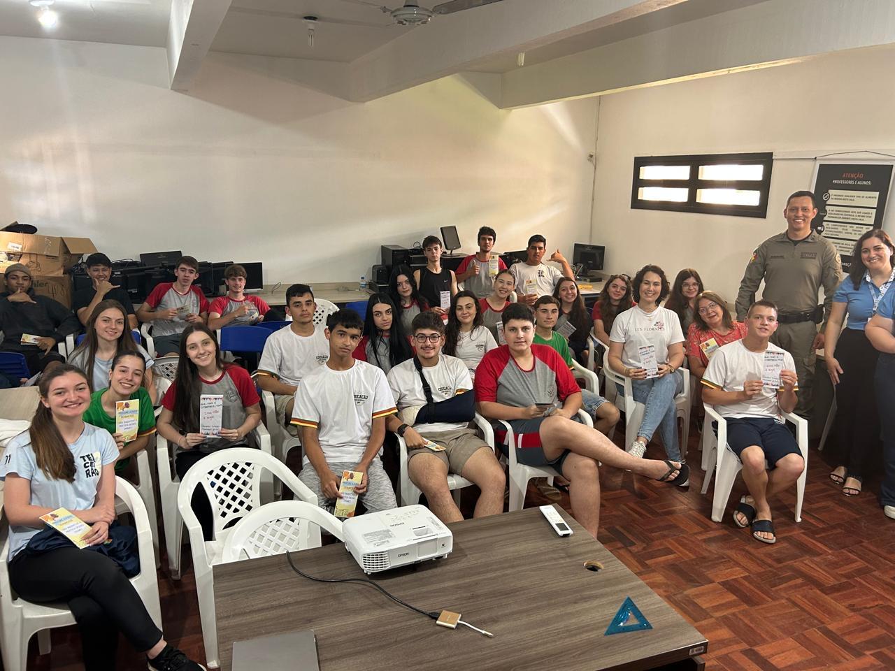 Na tarde desta quarta-feira (5/11), a Brigada Militar, por meio do Programa Educacional de Resistência às Drogas e à Violência (Proerd) do 2º Batalhão de Policiamento em Áreas Turísticas (2º BPAT), realizou palestras com o tema “Bullying” para cerca de 160 estudantes do Ensino Fundamental e Médio das escolas EMEF Pedro Antônio Selau e EEB Sagrada Família, em Morrinhos do Sul.