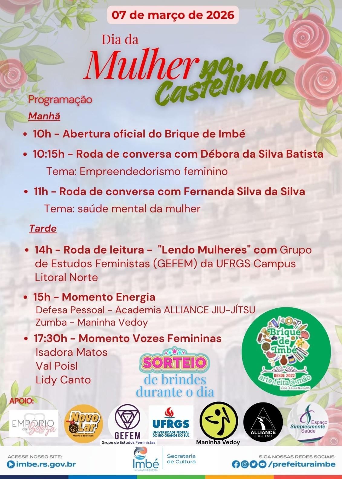 Segundo a diretora da Casa da Cultura, Pâmela Vasconcelos, a iniciativa tem como objetivo valorizar o protagonismo feminino por meio da cultura, do empreendedorismo e de atividades voltadas ao bem-estar e à integração. A programação contará com a participação do Brique de Imbé, reunindo artesãs e empreendedoras locais que irão expor e comercializar seus produtos, fortalecendo a economia criativa do município.