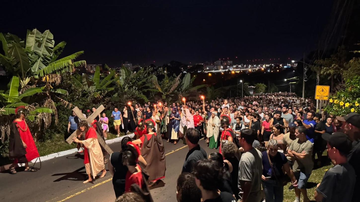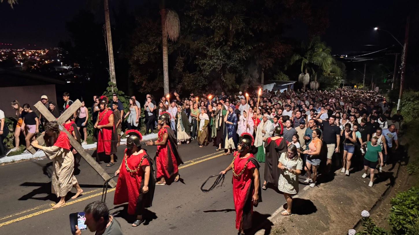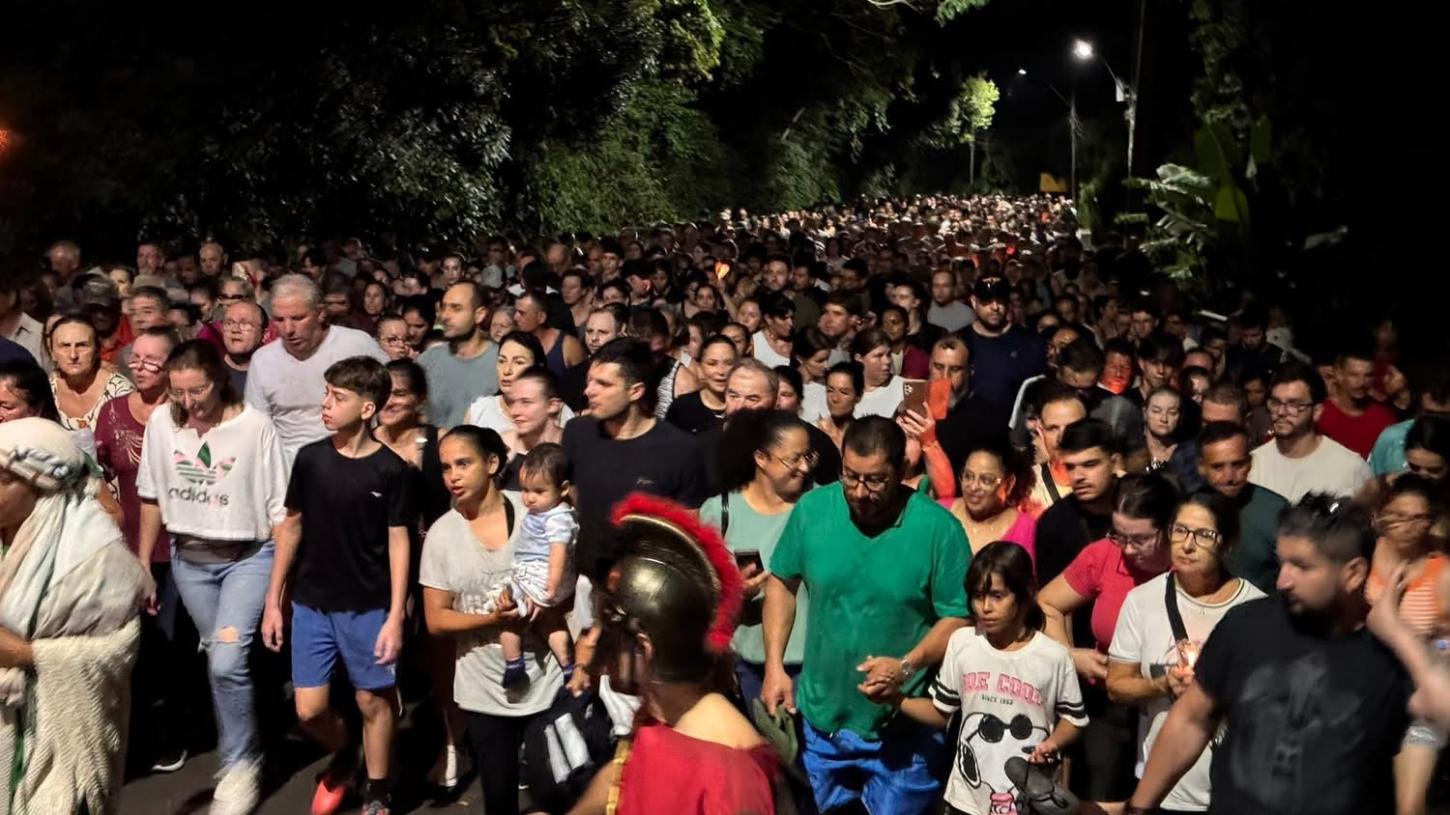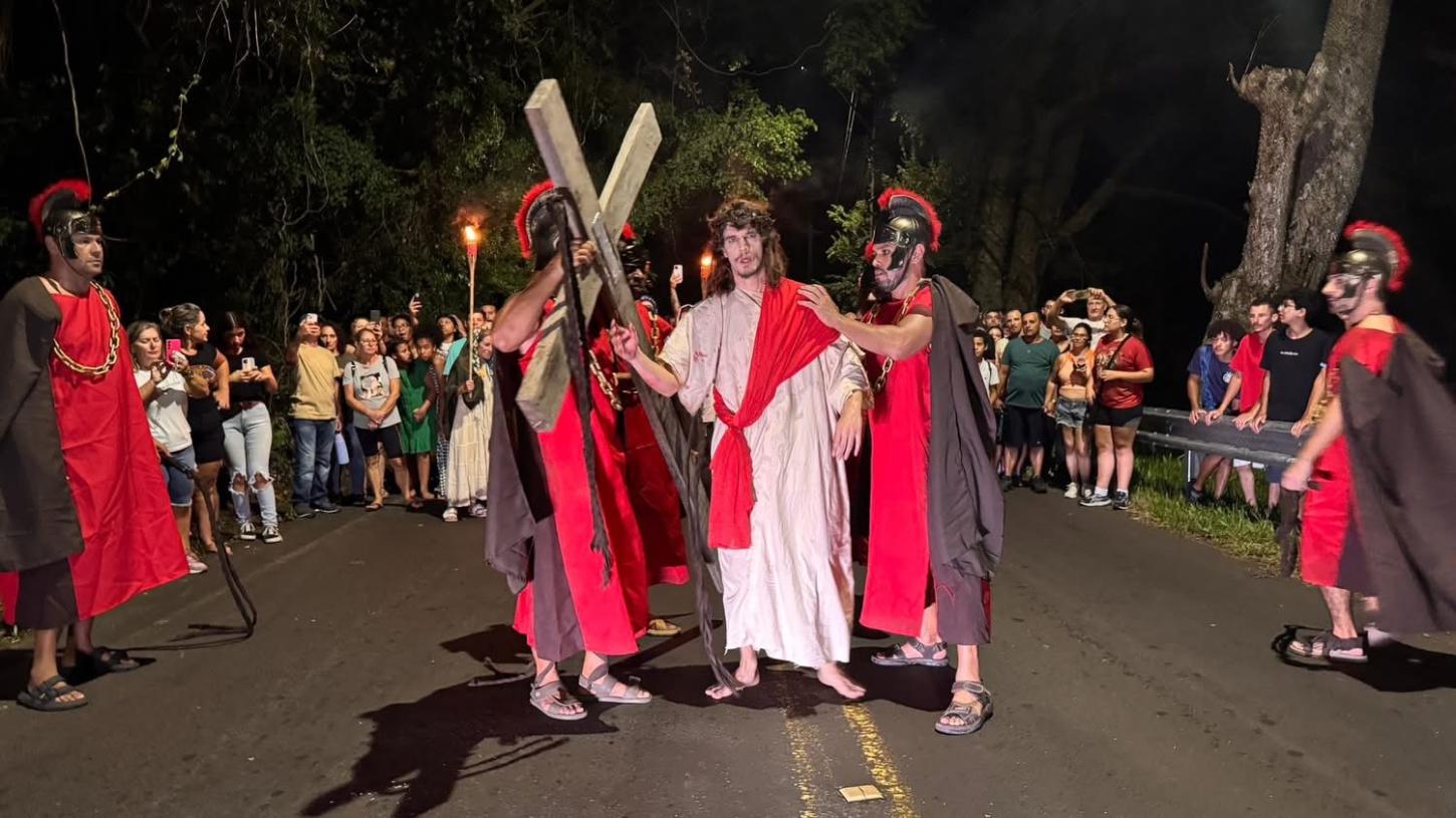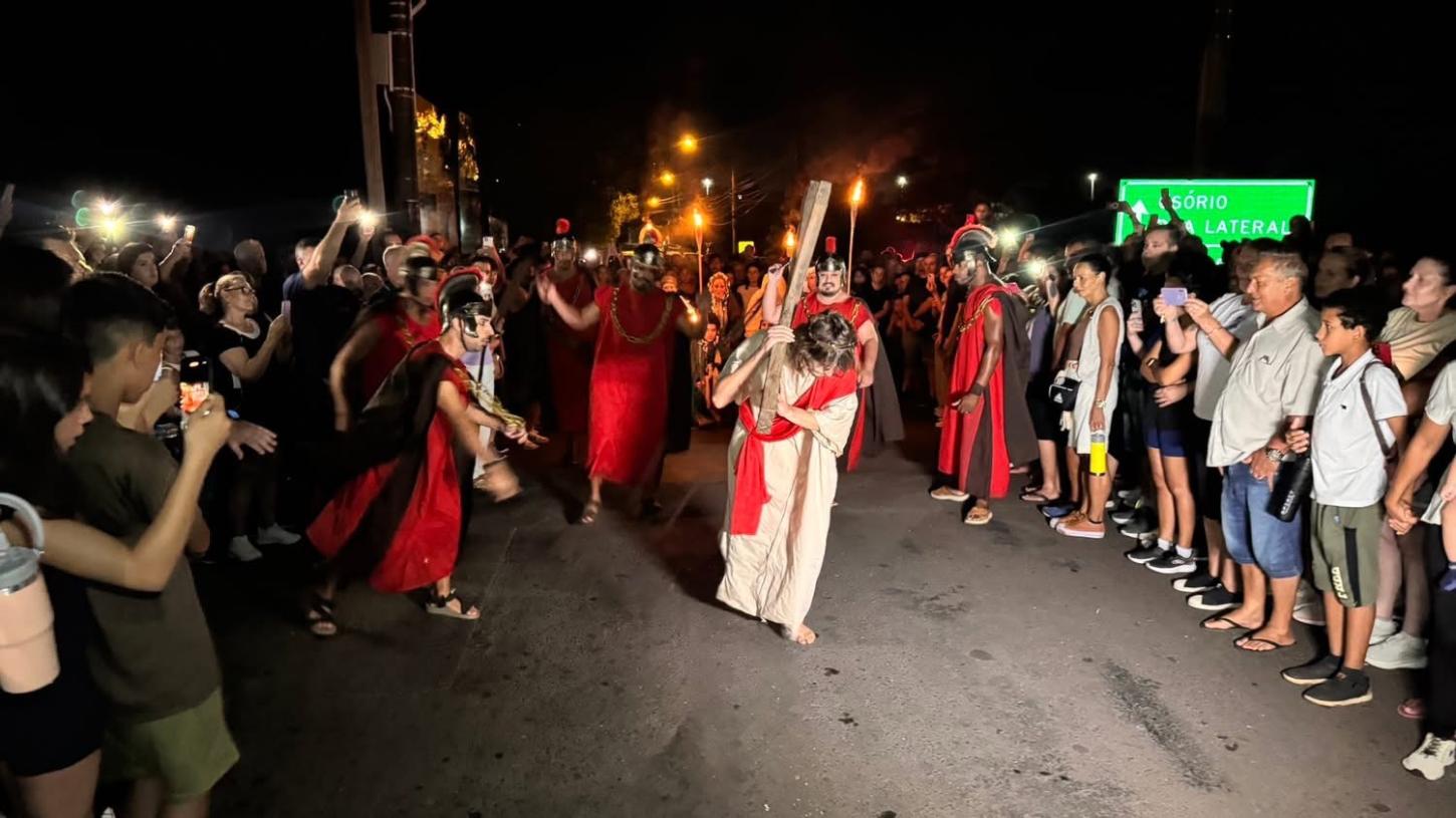 O Morro da Borússia foi palco de um dos momentos mais marcantes da programação de Páscoa em Osório. Segunda a Brigada Militar, mais de 3 mil pessoas prestigiaram o espetáculo de Via Sacra “Luzes da Paixão”, vivenciando uma experiência de fé, reflexão e emoção.