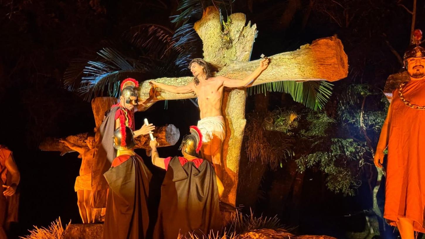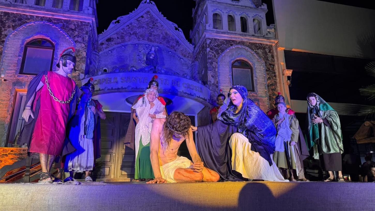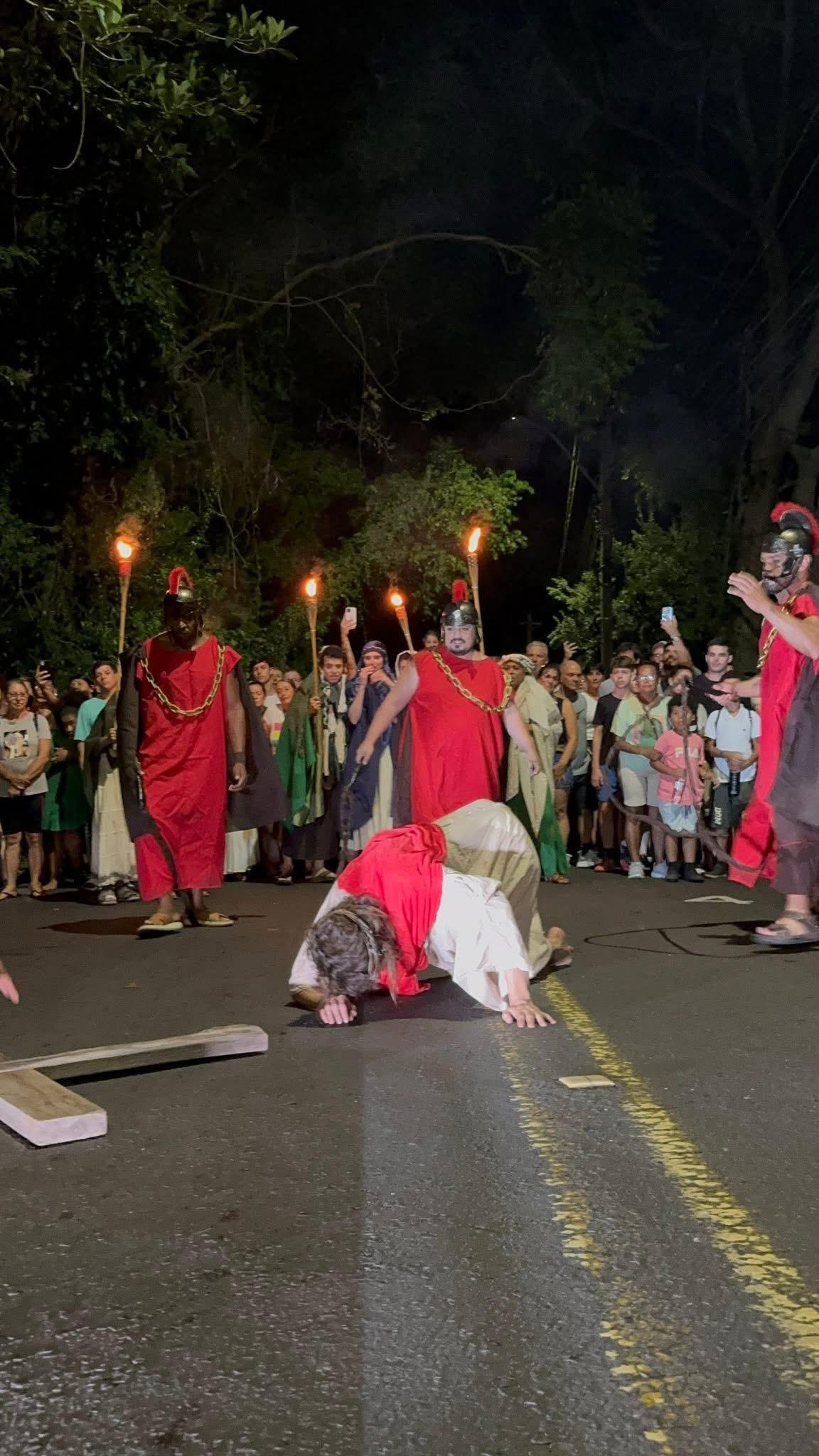 O espetáculo contou com a atuação do grupo Galpão das Artes e da Flutua Dança Aérea, que deram vida aos últimos momentos de Jesus Cristo com sensibilidade e intensidade.