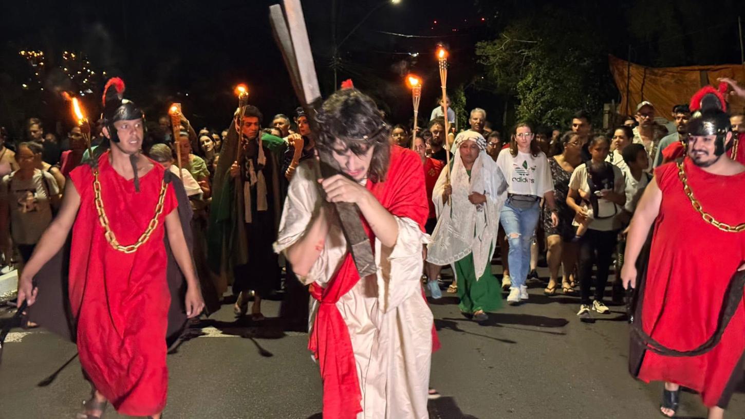 Durante o trajeto, o público acompanhou a encenação da Paixão de Cristo, representada nas 14 estações, em um percurso que uniu espiritualidade, arte e devoção.