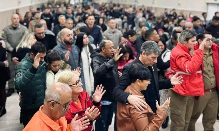A Igreja Universal de Tramandaí promoveu neste domingo (24) a Concentração de Fé e Milagres, evento marcado por momentos de oração, reflexão e uma homenagem especial aos órgãos de segurança que atuam diariamente na proteção da população. A cerimônia foi realizada na sede da instituição, localizada na Avenida Fernandes Bastos, no Centro da cidade.