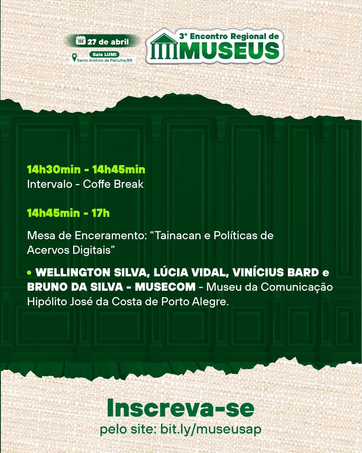 As inscrições estão abertas até o dia 24 de abril. Você pode se inscrever pelo link na nossa bio das redes sociais ou diretamente em http://bit.ly/museusap.