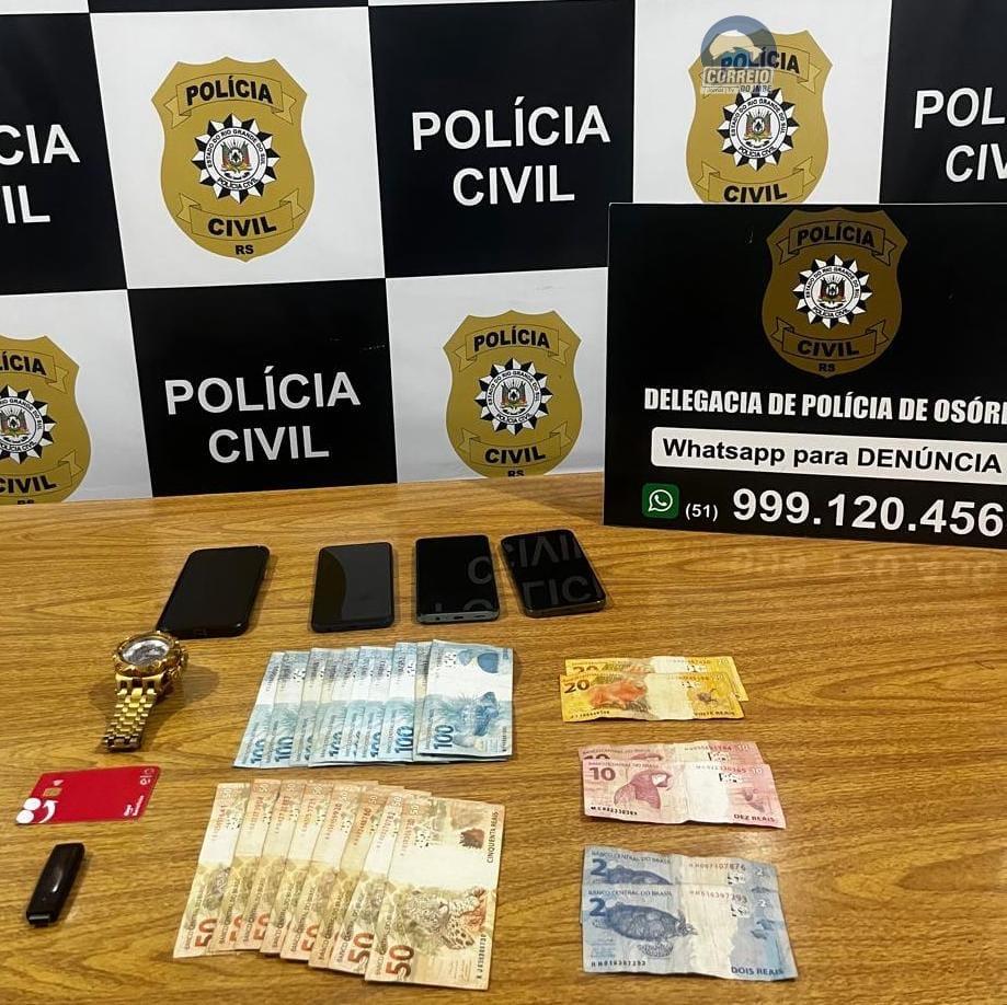 Segundo o delegado de polícia João Henrique Gomes de Almeida, responsável pelas delegacias de polícia de Osório e Capivari do Sul, litoral norte gaúcho, a partir dos diversos registros policiais de furtos em veículos, ocorridos nos últimos finais de semana, uma equipe policial desenvolveu investigações preliminares, com apoio de policiais civis da DRACO de São Leopoldo, logrando êxito na identificação de indivíduos suspeitos e envolvidos em crimes. Nas buscas, os policiais civis lograram êxito em localizar e apreender aparelhos celulares, jóias, valores em moeda nacional, cartões bancários, dentre outros objetos relevantes, os quais serão devidamente analisados e darão suporte à continuidade das investigações. Os indivíduos suspeitos e investigados já são portadores de anotações criminais, sobretudo de crimes patrimoniais, devendo ser responsabilizados penalmente por furto qualificado.