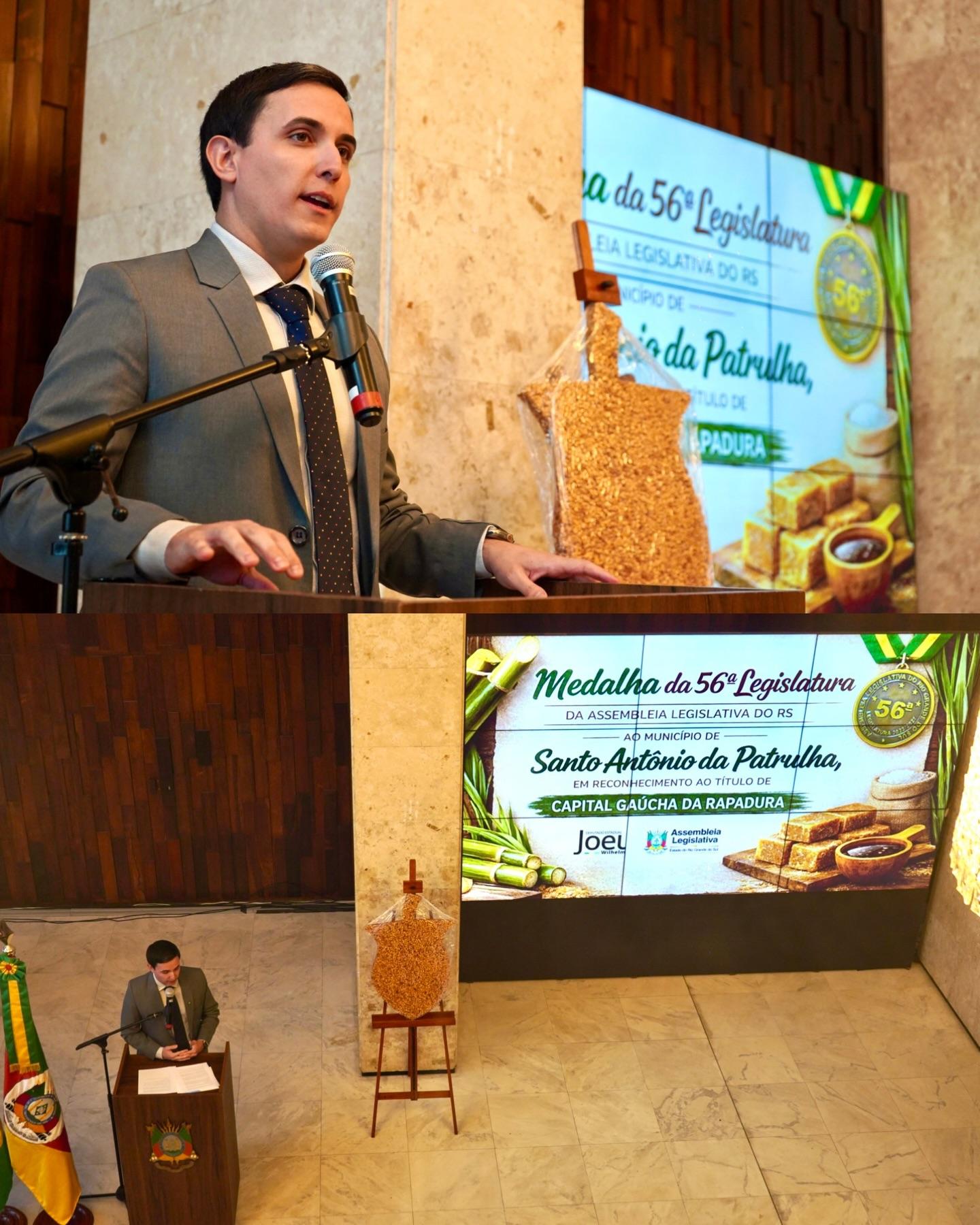 Na ocasião, foi entregue ao prefeito Rodrigo Massulo a Medalha da 56ª Legislatura e um certificado, concedendo ao município o título. Também foram entregues certificados a 11 empresas patrulhenses produtoras de rapaduras e doces. A homenagem, proposta pelo deputado Joel Willhelm, destaca a relevância histórica, cultural e econômica da produção de rapadura em Santo Antônio da Patrulha.