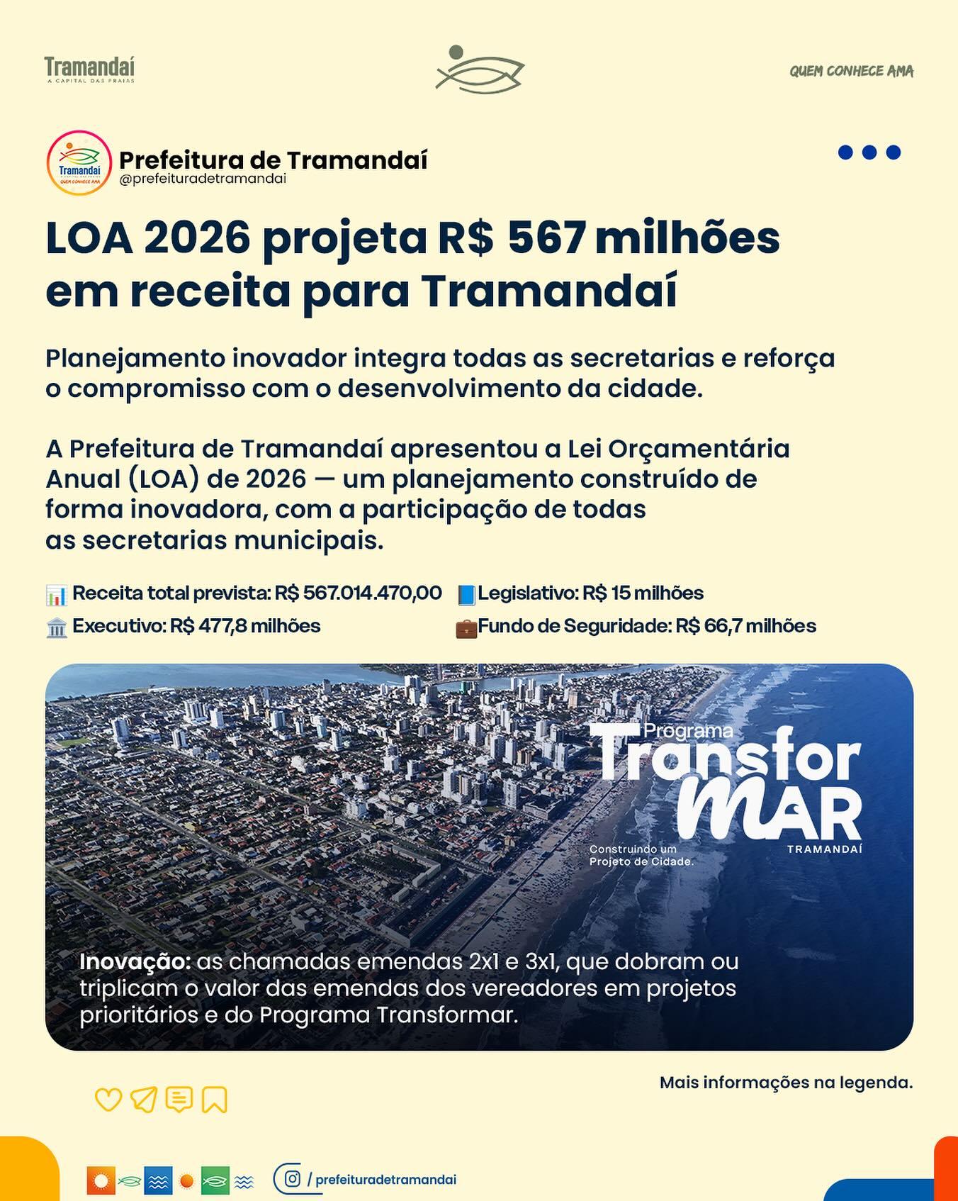 A LOA 2026 também traz inovações nas emendas parlamentares, com o modelo 2x1 e 3x1, que permite ampliar os valores destinados a projetos prioritários e ao Programa Transformar, incentivando investimentos diretos nas áreas que mais impactam a comunidade.